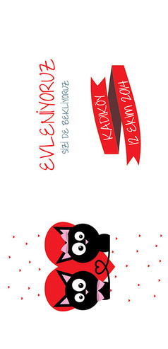 Herkesin tercih ettiği klasik düğün davetiyelerinden sıkıldınız ve farklı bir davetiye arıyorsanız; ayrıca "Kedilere bayılıyorummm!" diyorsanız işte tam da size göre Mutlu Patiler (21 cm x 10 cm) davetiyemiz !