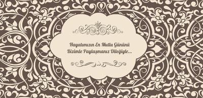 "En Mutlu Günümüz" (21 cm x 10 cm) düğün davetiyesi adına yakışır şekilde bu en özel gününüzü en iyi yansıtan şık davetiyelerden biri ! Tasarımıyla klasik düğün davetiyes i tercih edenlerin gönlünü çelecek hoş bir alternatif olacak!