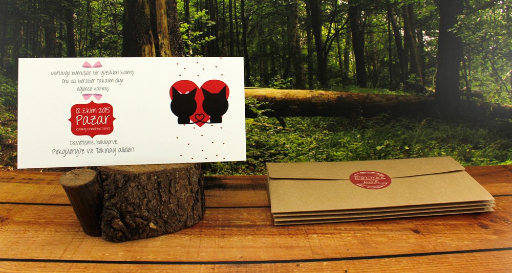 Herkesin tercih ettiği klasik düğün davetiyelerinden sıkıldınız ve farklı bir davetiye arıyorsanız; ayrıca "Kedilere bayılıyorummm!" diyorsanız işte tam da size göre Mutlu Patiler (21 cm x 10 cm) davetiyemiz !