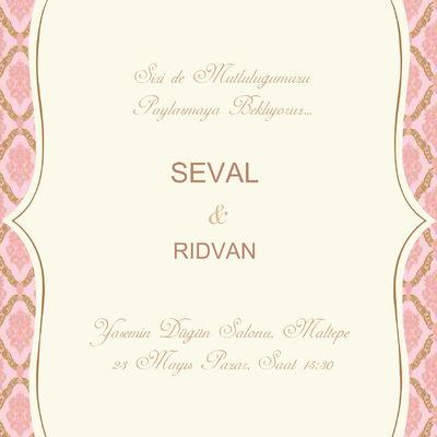 Bu davetiyeyi isterseniz farklı renklerde ya da yazı karakterlerinde tasarlayabilir, tamamen size özel bir hale getirebilirsiniz. Bunun için kullanımınıza sunulmuş tasarım paneliyle davetiyenizi tasarlarken zamanın nasıl geçtiğiniz anlamayacaksınız bile!