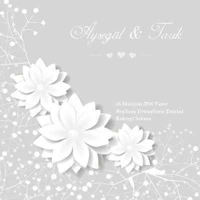 Düğün davetiyelerinde abartılı tasarımlardan uzak duran, sadeliği tercih eden bir yapınız varsa "Beyaz Tutku" (15 cm x 15 cm) dikkatinizi mutlaka çekecektir. Sade ama göz alıcı tasarımıyla şık düğün konseptinize uyacak bu davetiyeyle konuklarınızın gözlerini kamaştıracaksınız.
