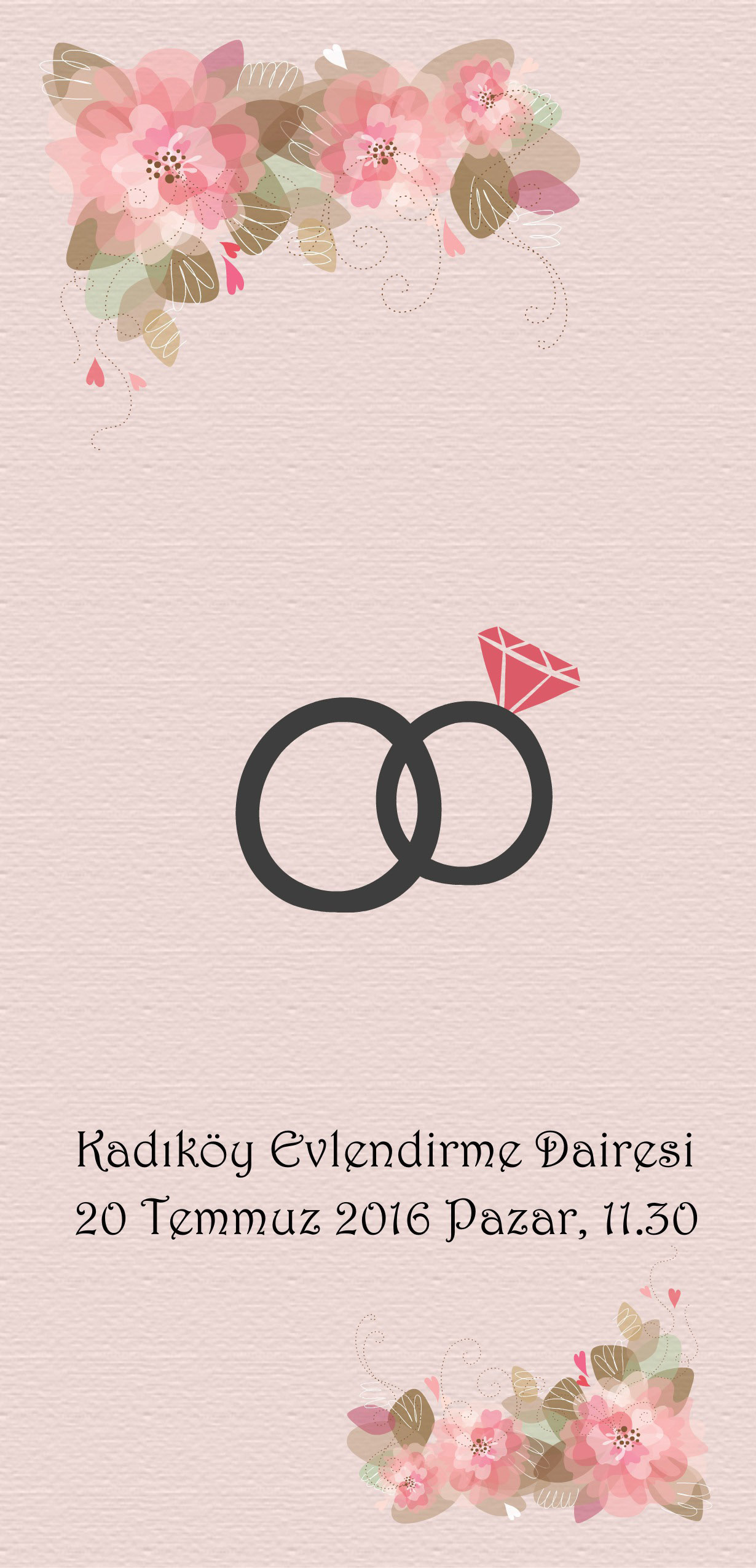 Hayatınızın sonuna kadar birarada olmak istediğiniz insanı buldunuz. Şimdi sırada bu kararınızı tüm dünyaya söylemek var. Düğün gününüzde sevdiklerinize bunu "Ruh Eşim" (10 cm x 21 cm) davetiyesi ile duyurup, mutluluğunuzu paylaşmalarını sağlayabilirsiniz.