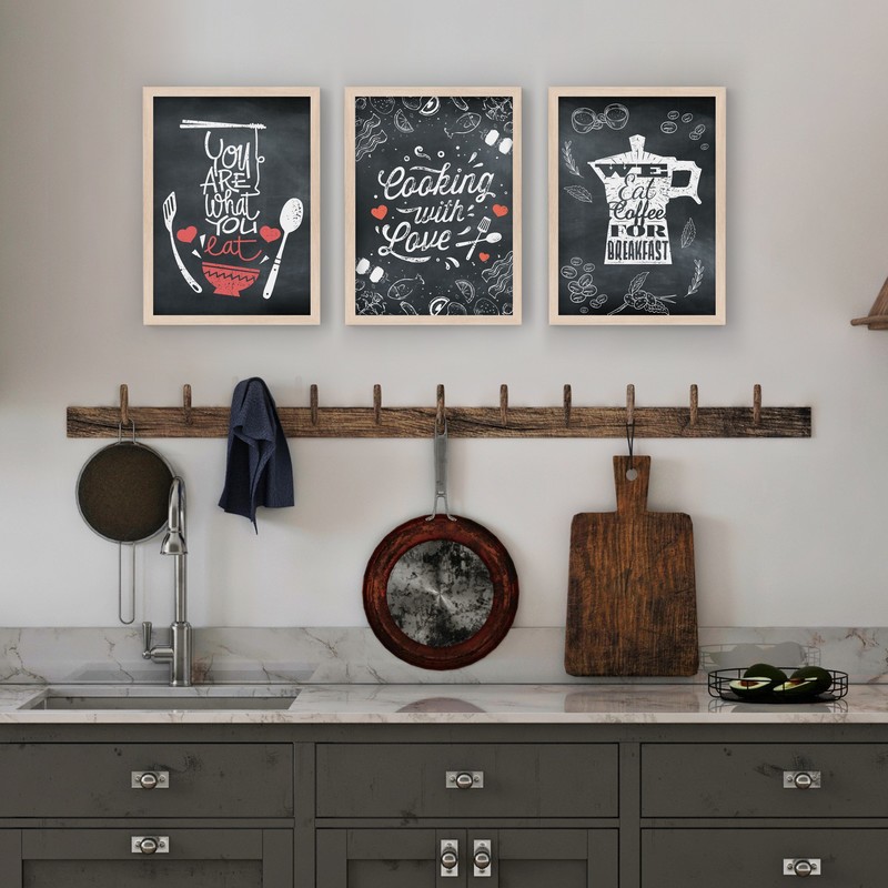 3 Çerçeveli Tablo Seti - Mutfak Kara Tahta