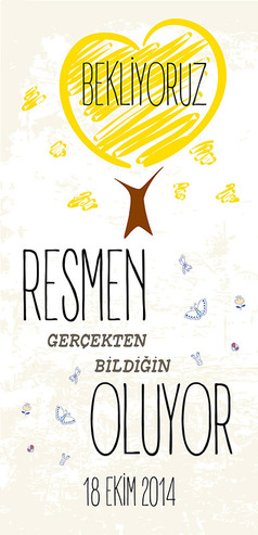 Hayatınızın dönüm noktası olan bu güzel günün tüm süreçleri; hem eğlenceli, hem detaylı ve bir o kadar da yorucu olabilir. Hatıraları ne kadar güçlü tutmaya çalışırsak çalışalım, maalesef hatırlanacak şeyler giderek azalacaktır. Ancak bazen küçücük bir detay, o özel günü, tekrar yaşamanızı ve yaşatmanızı sağlayabilir; davetiyeniz . "Çok mutluyuz!"" diyen siz samimi çiftler için tüm içtenliğinizi yansıtabileceğiniz, size özel ve en az sizin kadar orjinal davetiyeler için doğru kategori: "Ayy Çok Mutluyuz" (10 cm X 21 cm)
