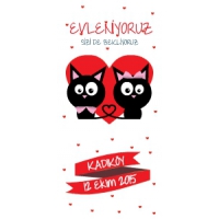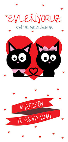 Herkesin tercih ettiği klasik düğün davetiyelerinden sıkıldınız ve farklı bir davetiye arıyorsanız; ayrıca "Kedilere bayılıyorummm!" diyorsanız işte tam da size göre Mutlu Patiler (10 cm x 21 cm) davetiyemiz !