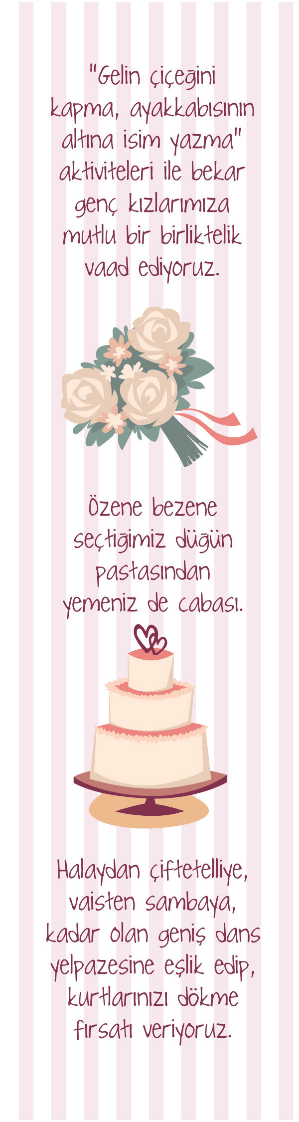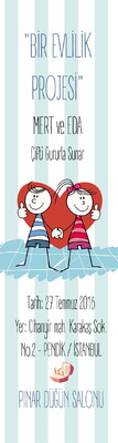 Bu davetiyelerimiz arasında renkli tasarımı ile dikkat çeken "Bir Evlilik Projesi" (5 cm x 19 cm) düğün davetiyemiz genç ve kendini hep genç hisseden çiftler için. Üstelik online tasarım imkanı ile...
