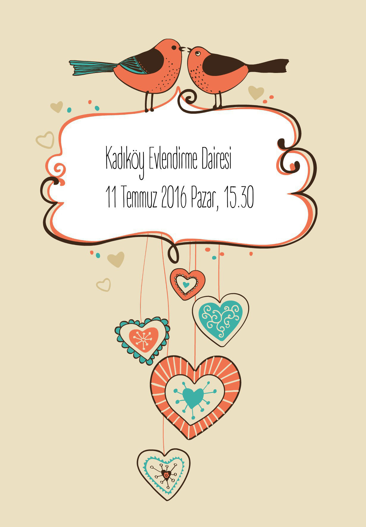 Bu şık davetiyenin tasarımı size hoş geldiyse "Muhabbet Kuşları" ( 10 cm x 15 cm) tasarımınızı bir an önce hazırlamaya başlayabilirsiniz. Tasarım panelimiz ile davetiyeniz üzerindeki her değişikliği yapabilir, fotoğraflar, yazılar ekleyerek davetiyenizi kendinize göre düzenleyebilirsiniz.
