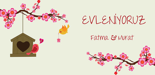 Sevimli ve romantik kuş motiflerinden oluşan 'Aşk Kuşları'  (21 cm x 10 cm) eğlenceli düğün davetiyesi  isteyen tüm çiftlerin kalbini kazanacak. Davetiyenizi  size özel hale getirmek içinse yapmanız gereken tek şey “TASARLAMAYA BAŞLA”  butonuna basmak.