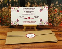 Düz ve klasik davetiyelerden hoşlanmayan, tasarım davetiye ile aşklarını kağıda dökmek isteyen çiftler için "Çiçek Bahçesi" (21 cm x 10 cm) kusursuz bir seçim olacak. Düğününüze çiçek ve kelebeklerin dansı eşliğinde bir başlangıç yaparak, hem çok özel hem de ayrıcalıklı bir organizasyona imza atabilirsiniz.