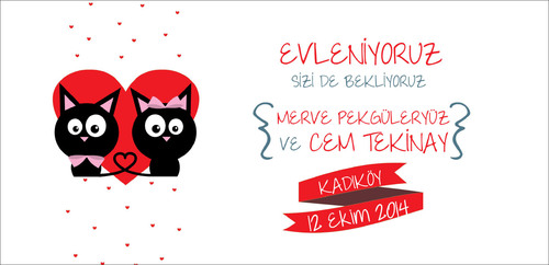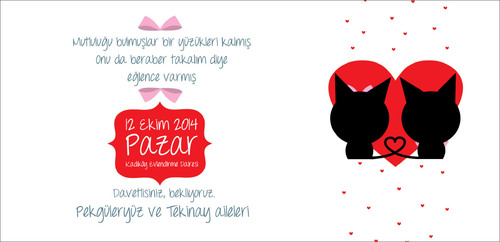 Herkesin tercih ettiği klasik düğün davetiyelerinden sıkıldınız ve farklı bir davetiye arıyorsanız; ayrıca "Kedilere bayılıyorummm!" diyorsanız işte tam da size göre Mutlu Patiler (21 cm x 10 cm) davetiyemiz !
