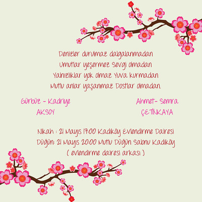Bu renkli ve çok eğlenceli davetiyeyi hemen "TASARLAMAYA BAŞLA" butonunu tıklayarak aşkınıza özel olarak yeniden hazırlamaya başlayabilirsiniz. Başka kimsede olmayan, içine sevginizi kattığınız "Aşk Kuşları" (15 cm x 15 cm) davetiyenizi online olarak hazırlamak için işte tüm yapmanız gereken bu!