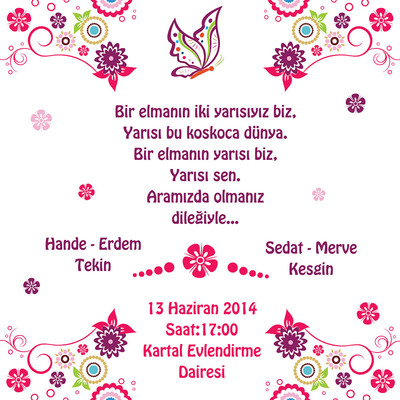 Düğün  denince akla gelen ilk objelerdendir davetiye . Özgün tasarım ve görünümüyle evlenecek çiftlerin zevkini, estetiğini yansıtan güzel bir basılı çağrıdır. Bu çağrıyı cazip hale getiren birçok davetiye  arasından "Çiçek Bahçesi" ne ne dersiniz?