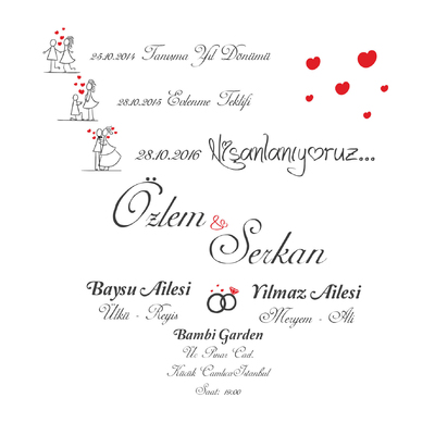 Hayaliniz evlenip, mutlu bir yuva kurmak... Ömür boyu sürecek bir masalın kahramanları olmak. Hep yanınızda olmasını istediğiniz partnerinizle yeni hayatınıza adım atmadan önce yapmanız gereken aileleri tanıştırmak ve bu mutlu haberi tüm sevdiklerinizle paylaşmak olmalı. Bunun için de şöyle her görenin bayılacağı, rengarenk bir davetiye seçmelisiniz.