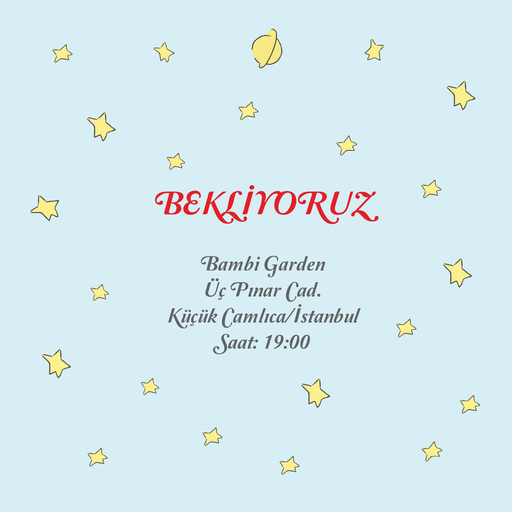 Her baktığınızda sizi gülümsetecek özel tasarım "Küçük Prens" (15 cm x 15 cm) davetiyesine sahip olmak için geç kalmayın, siparişinizi hemen verin!