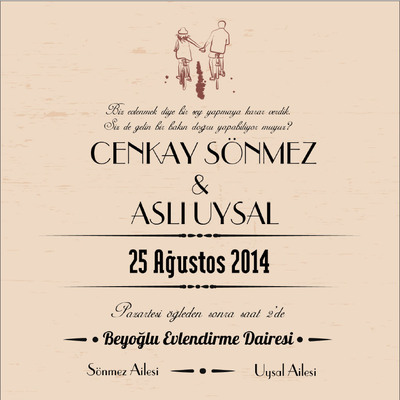 Eski zamanların o romantik rüzgarlarını düğün davetiyesine  taşımak isteyen çiftlere şahane ve unutulmaz bir önerimiz var: "Nostalji" 15 cm x 15 cm). Vintage  akımından ilham alan tasarımıyla düğününüzün ilk habercisi olacak bu şık davetiyeyle , çok özel bir organizasyonun temellerini atabilirsiniz.