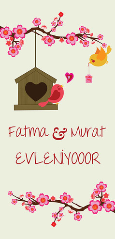 Düğün davetiyesinde farklı bir tarz yakalamak isteyen çiftler için davetiye seçimi oldukça zor oluyor. Klasik davetiye modelleri arasında istediği davetiyeyi bulamayanlara özel tasarlanan "Aşk Kuşları" (10 cm x 21 cm) düğün davetiyesi , hem romantik hem de tatlı bir tarza sahip.