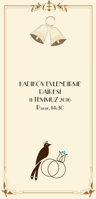 Bu güzel davetiyeyi kendi düğün konseptinize uyarlamak için tasarım panelimizden faydalanabilirsiniz. Hiçbir program bilgisine gerek olmadan, tek tuşla tasarımınızı yapabilir, davetiyenizi kendi beğeninize göre düzenleyebilirsiniz.