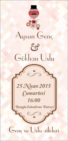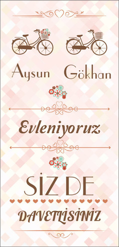 Romantik pembe tonlarda ve orijinal desenlerde tasarlanan "Aşkın Seyahati" (10 cm x 21 cm) davetiyesi ile aşkınızı herkese anlatacaksınız. Renkli tasarımı ile düğüne canlı bir hava katacak olan "Aşkın Seyahati" davetiyesi düğün ya da nişanınıza ayrı bir anlam katacak. Bunun yanında "Aşkın Seyahati" (10 cm x 21 cm)davetiyesini kişiselleştirme butonu ile kendi tarzınıza uygun düzenleyebilirsiniz. Kişiselleştirme butonu ile uygulama sayfasından davetiyeye kendi mesajınızı, isimlerinizi ve düğün bilgilerinizi ekleyebilirsiniz. Son olarak tarzınıza uygun zarf çeşidi de seçerek tamamlayacağınız davetiyenizi ölümsüz bir hatıraya dönüştürebilirsiniz.