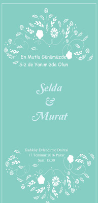 Aşkın masumiyetini en güzel temsil eden renktir beyaz. En mutlu gününüzde davetiyeniz de sizin bu masum aşkınızı anlatsın istemez misiniz? "Beyaz Masal" (10 cm x 21 cm) düğün davetiyesi aşkınızın en güzel simgelerinden biri olacak.