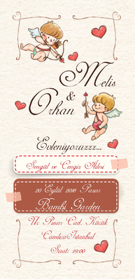 O gün güzelliğinizle, mutuluğunuzla sadece yeryüzündekileri değil gökyüzündeki tüm melekleri de kıskandıracaksınız! En güzel anıları yaşayacağınız, yüzünüzden gülücüklerin eksik olmayacağı bu gün, hatıralarınızda her zaman o özel yerini koruyacak. Yıllar sonra size bu günü anlatacak en güzel şeylerden biri de düğün davetiyeniz olacak.