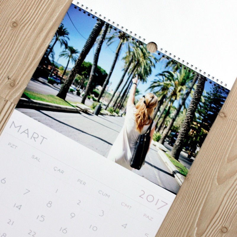 En güzel fotoğraflarınızla harika bir hatıra-hediye foto takvim hazırlayın. Her ay bittiğinde alttaki kısmı koparın ve kaliteli baskı fotoğraflarınız hatıra olarak kalsın. 12 adet fotoğrafınızı ekleyerek hemen sipariş verin.