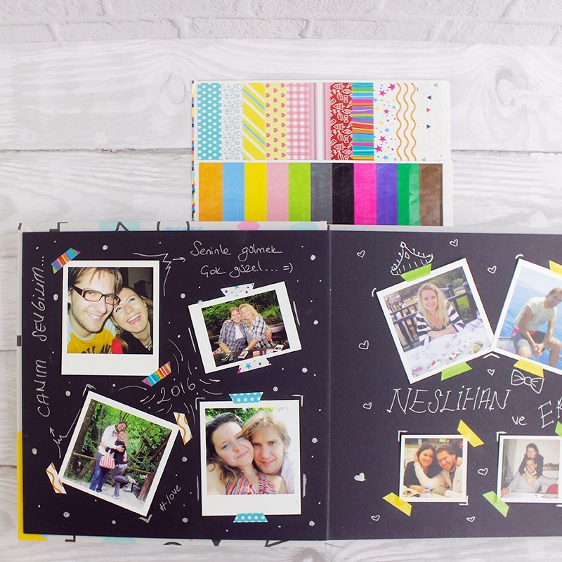 Şık görünümlü yapıştırma fotoğraf albümü ile yaratıcı bir hediye oluşturun.